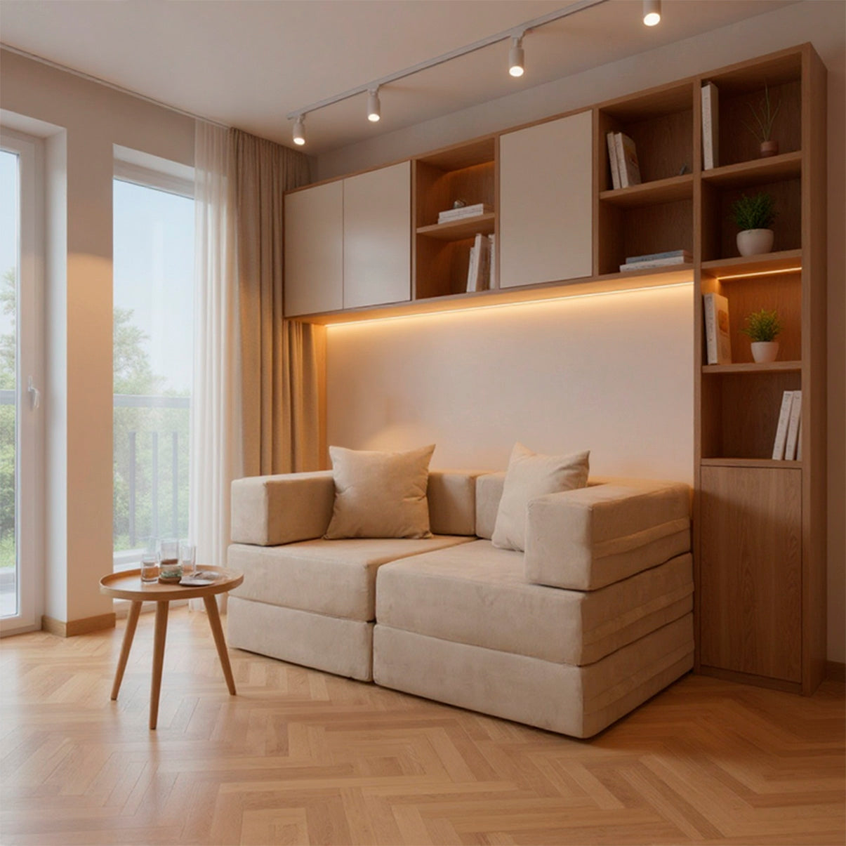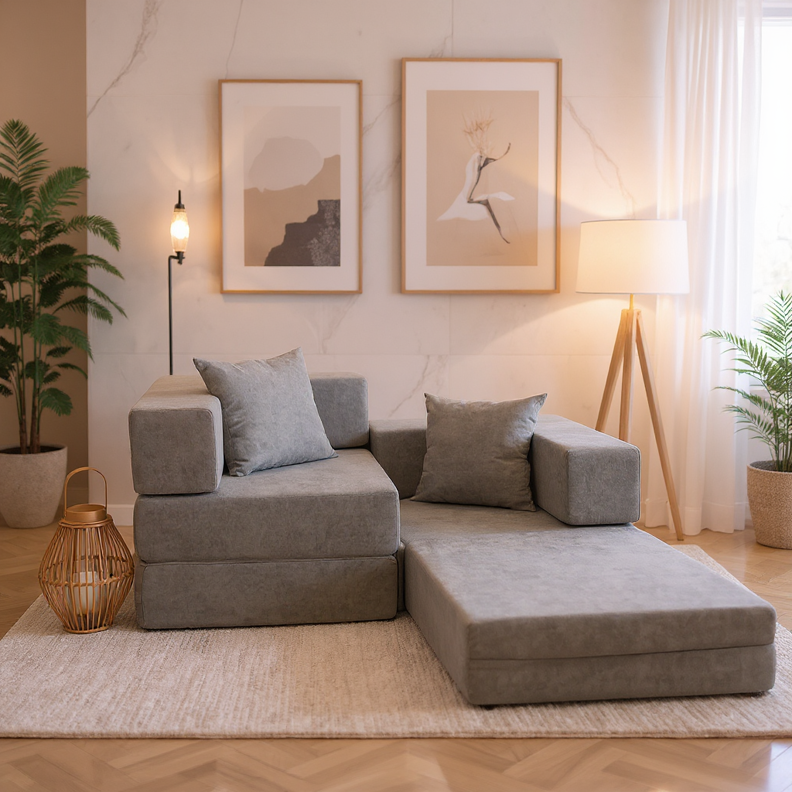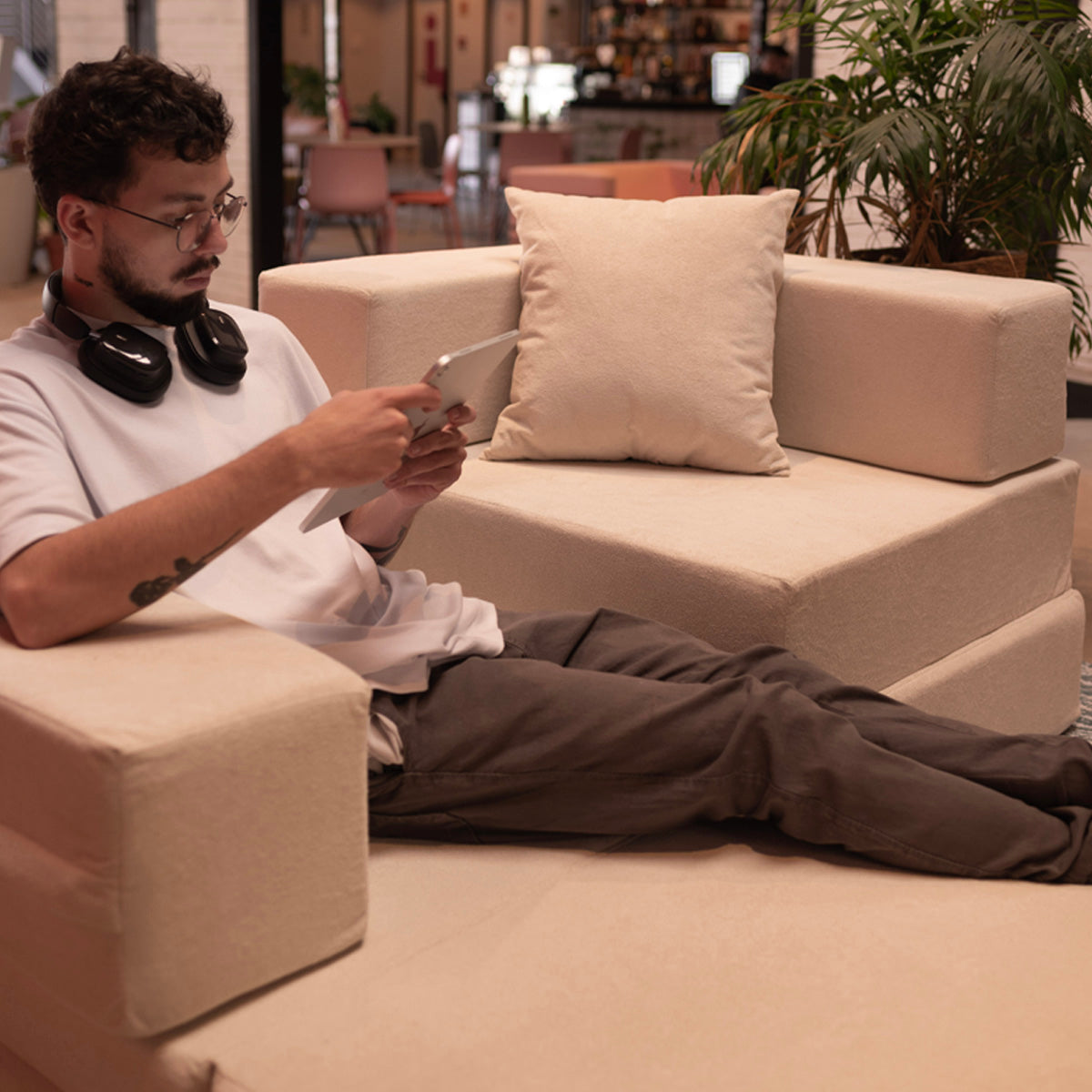 Junte para dormir, separe para relaxar, combine do seu jeito. O Cobbi se adapta a você — e o velcro de alta aderência mantém tudo no lugar.