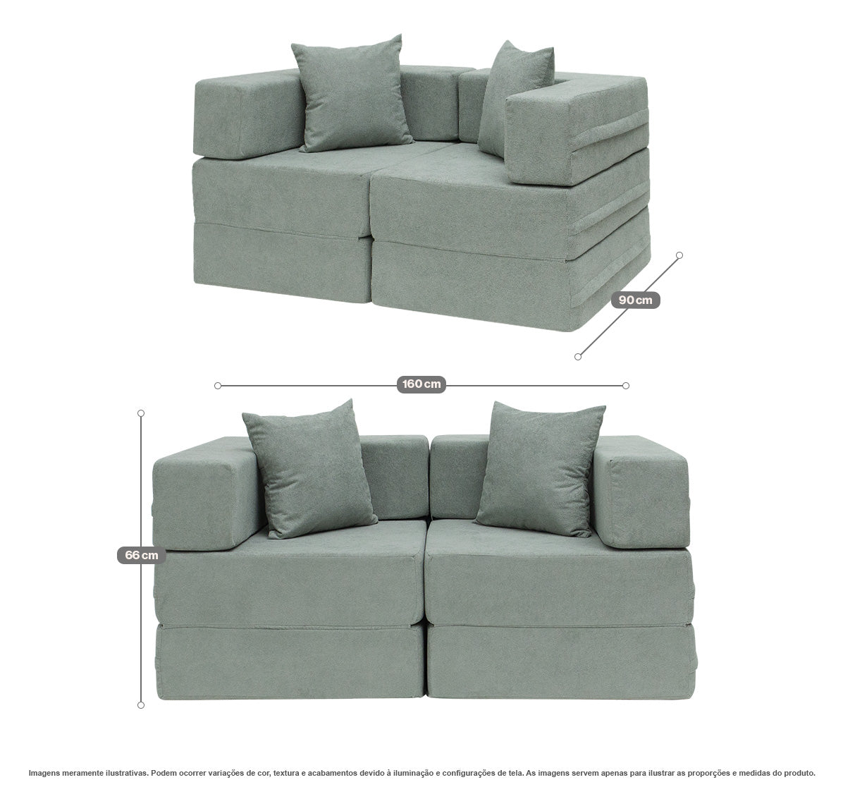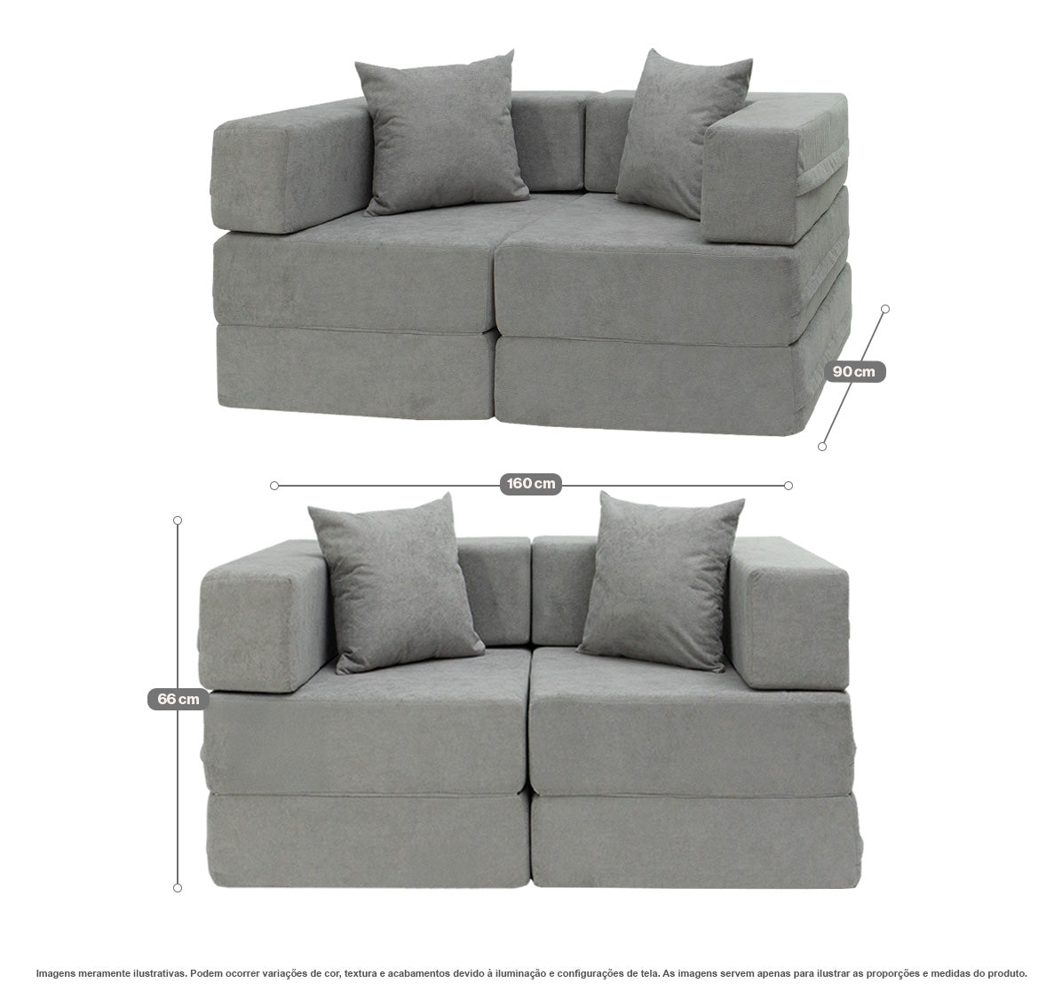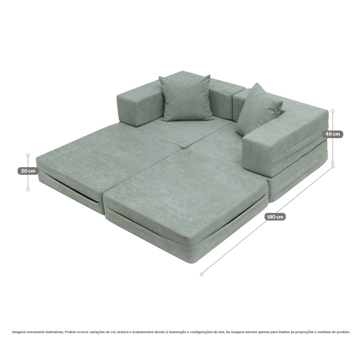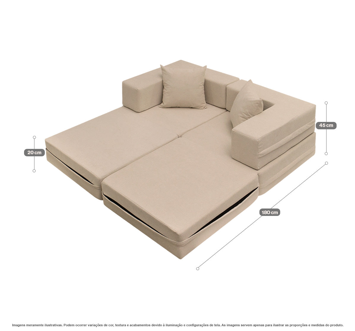 Velcro Premium de alta aderência entre módulos e encosto — estabilidade no uso diário.