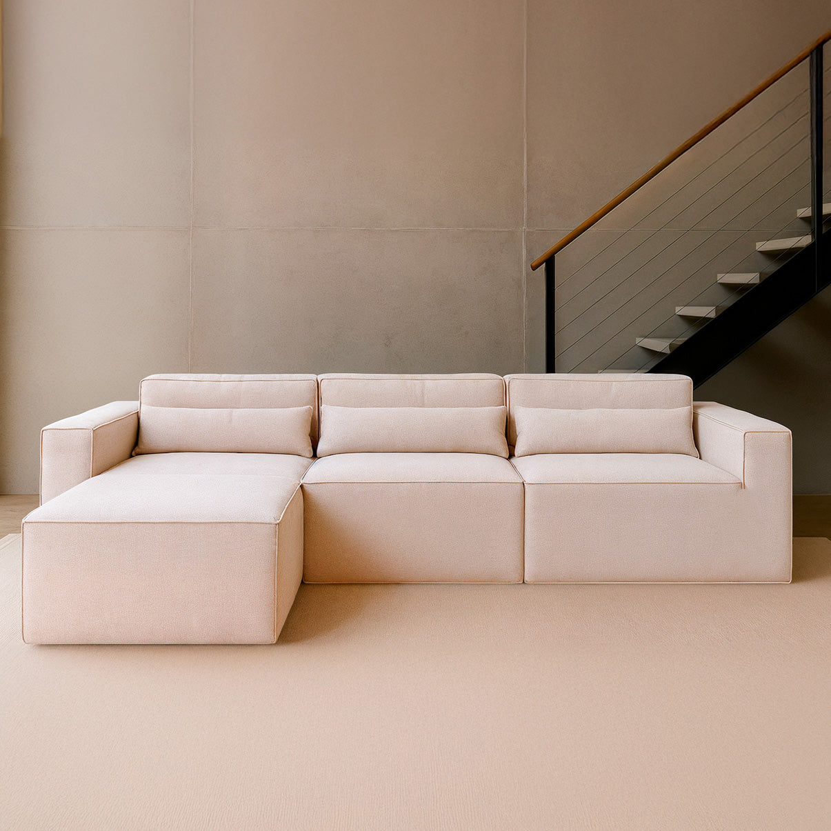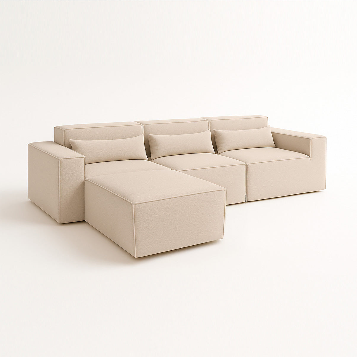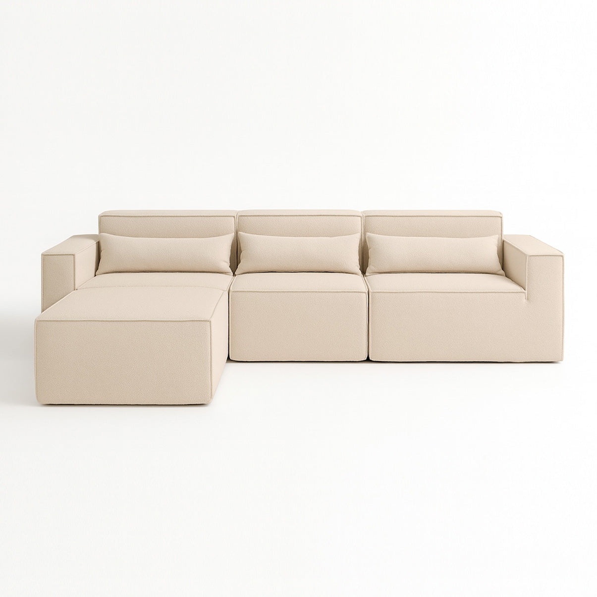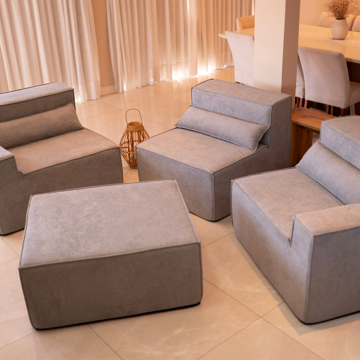 Reto, canto, com puff ou separado — o Paladium se adapta ao seu espaço e ao seu momento. Linhas marcantes, proporções equilibradas e tecido bouclé encorpado fazem dele o destaque da sua sala.