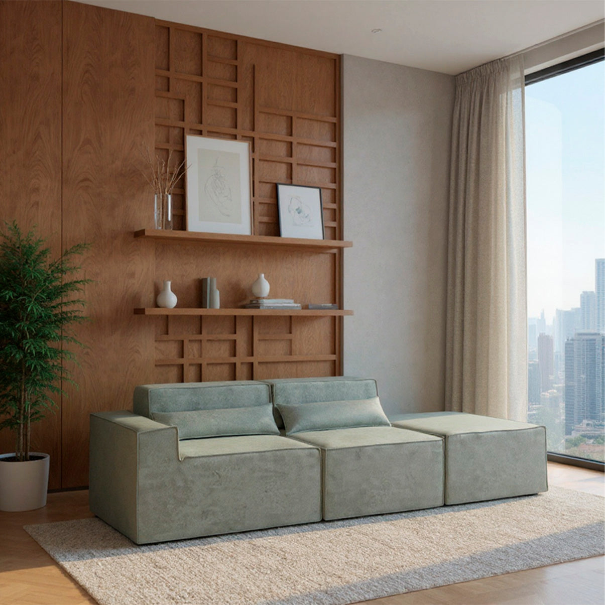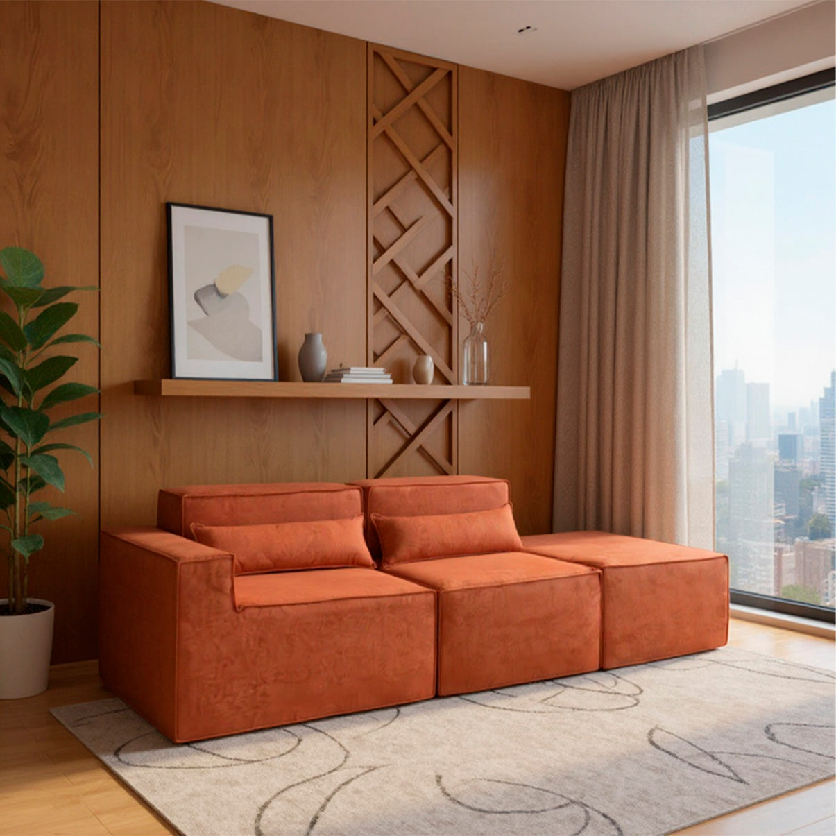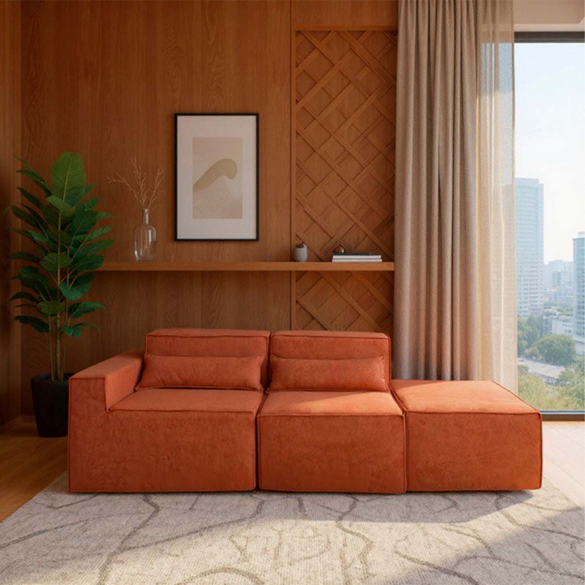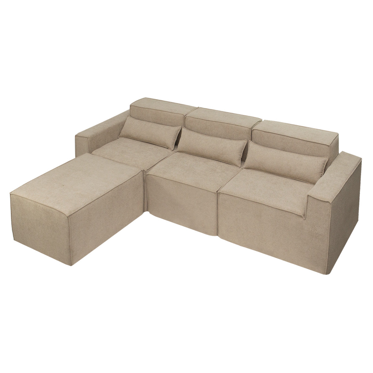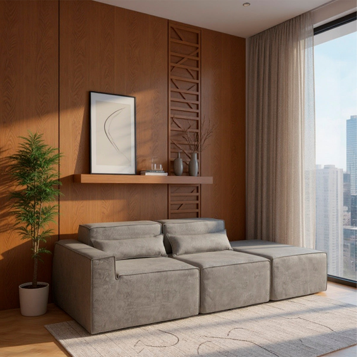 Reto, canto, com puff ou separado — o Paladium se adapta ao seu espaço e ao seu momento. Linhas marcantes, proporções equilibradas e tecido bouclé encorpado fazem dele o destaque da sua sala.