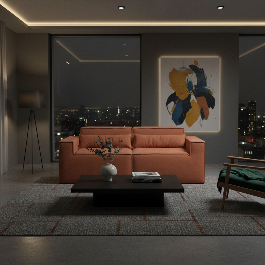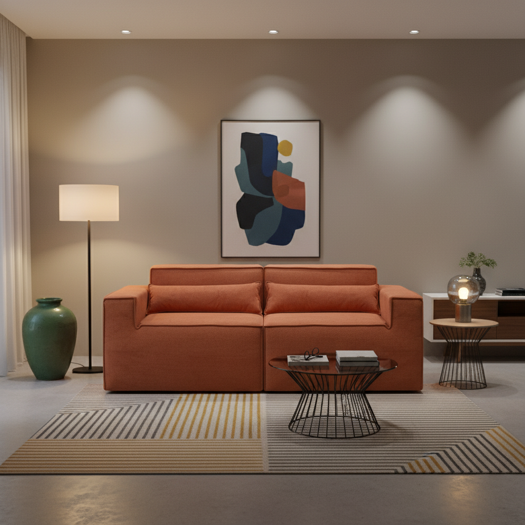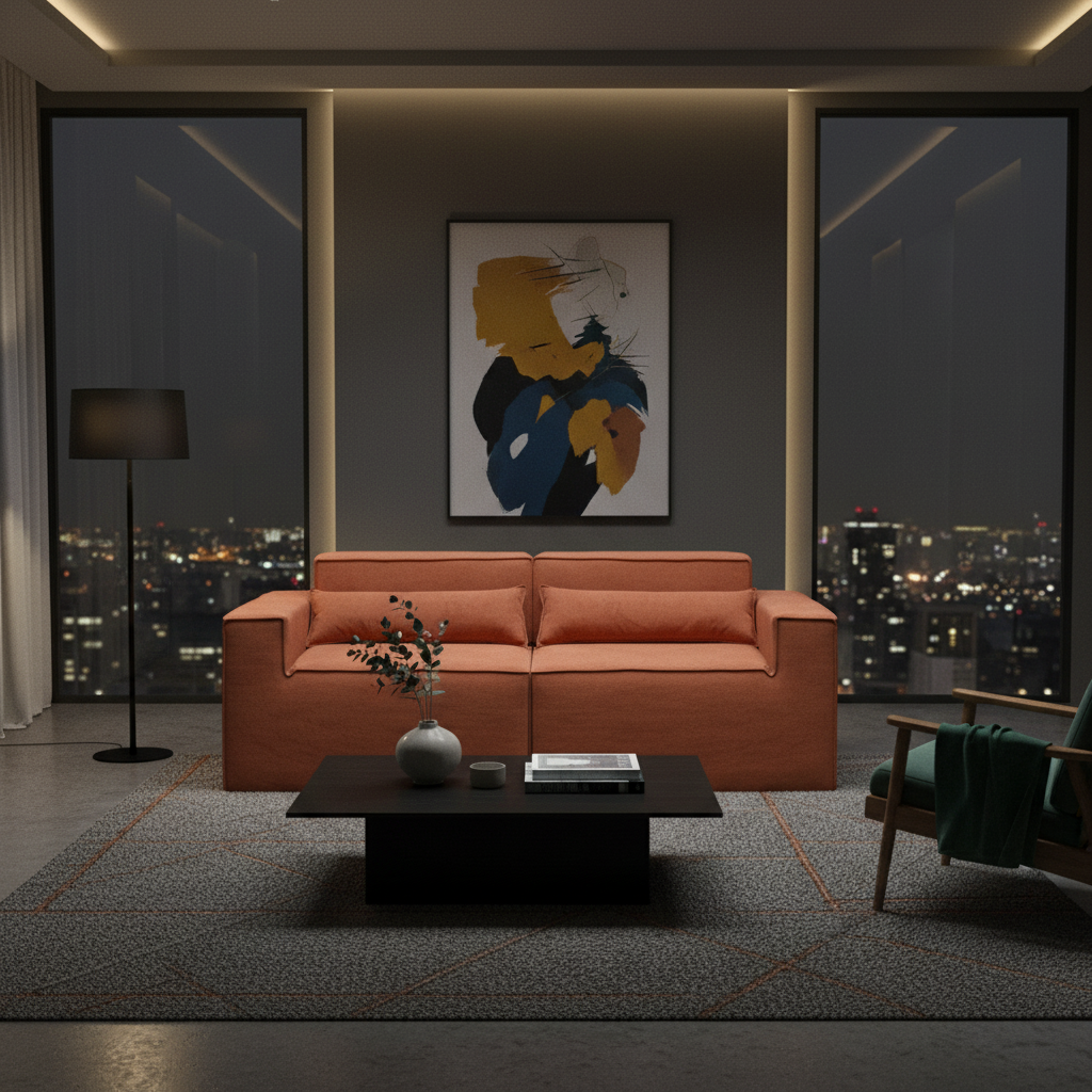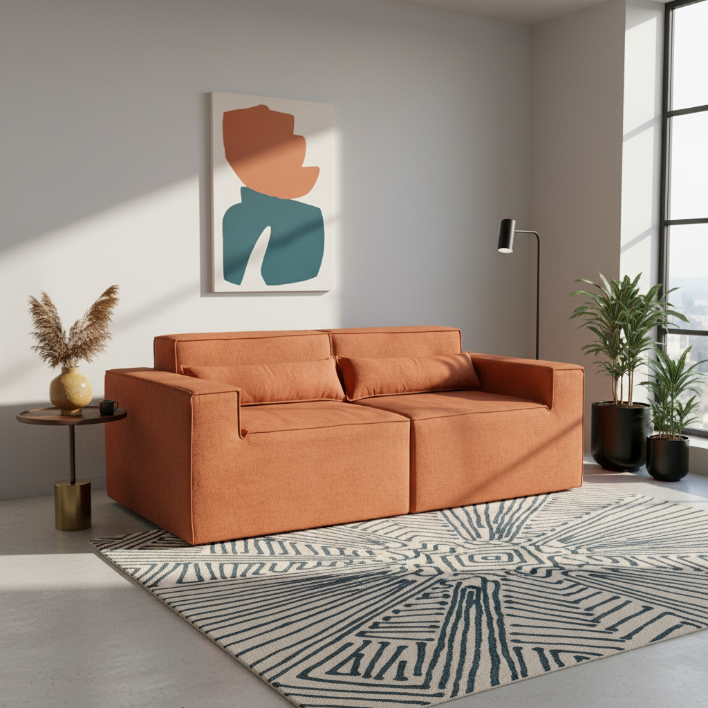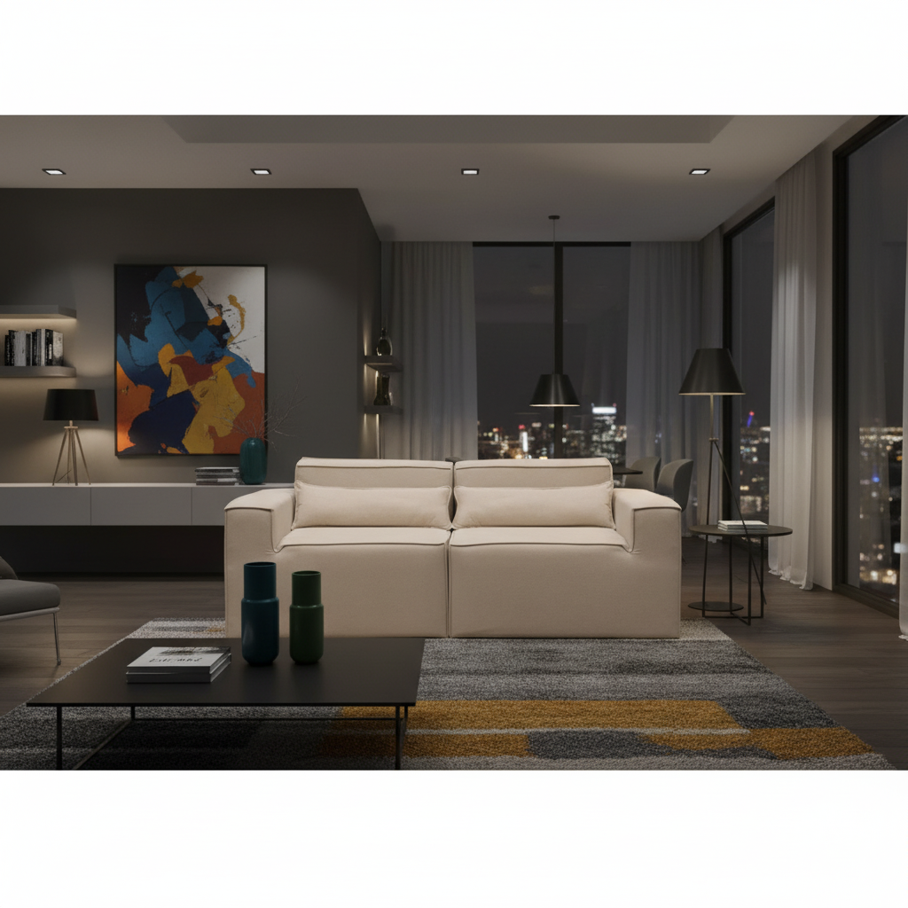 Reto, canto, com puff ou separado — o Paladium se adapta ao seu espaço e ao seu momento. Linhas marcantes, proporções equilibradas e tecido bouclé encorpado fazem dele o destaque da sua sala.