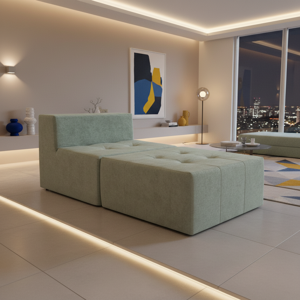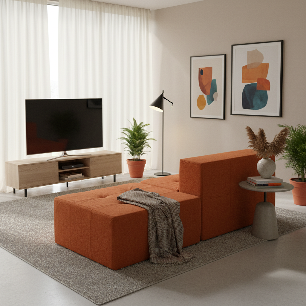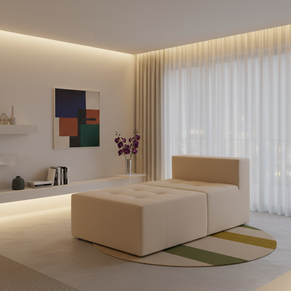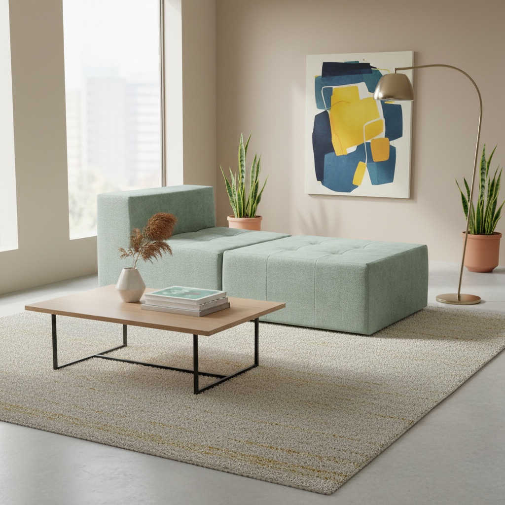 Reto, canto, com puff ou separado — o Paladium se adapta ao seu espaço e ao seu momento. Linhas marcantes, proporções equilibradas e tecido bouclé encorpado fazem dele o destaque da sua sala.